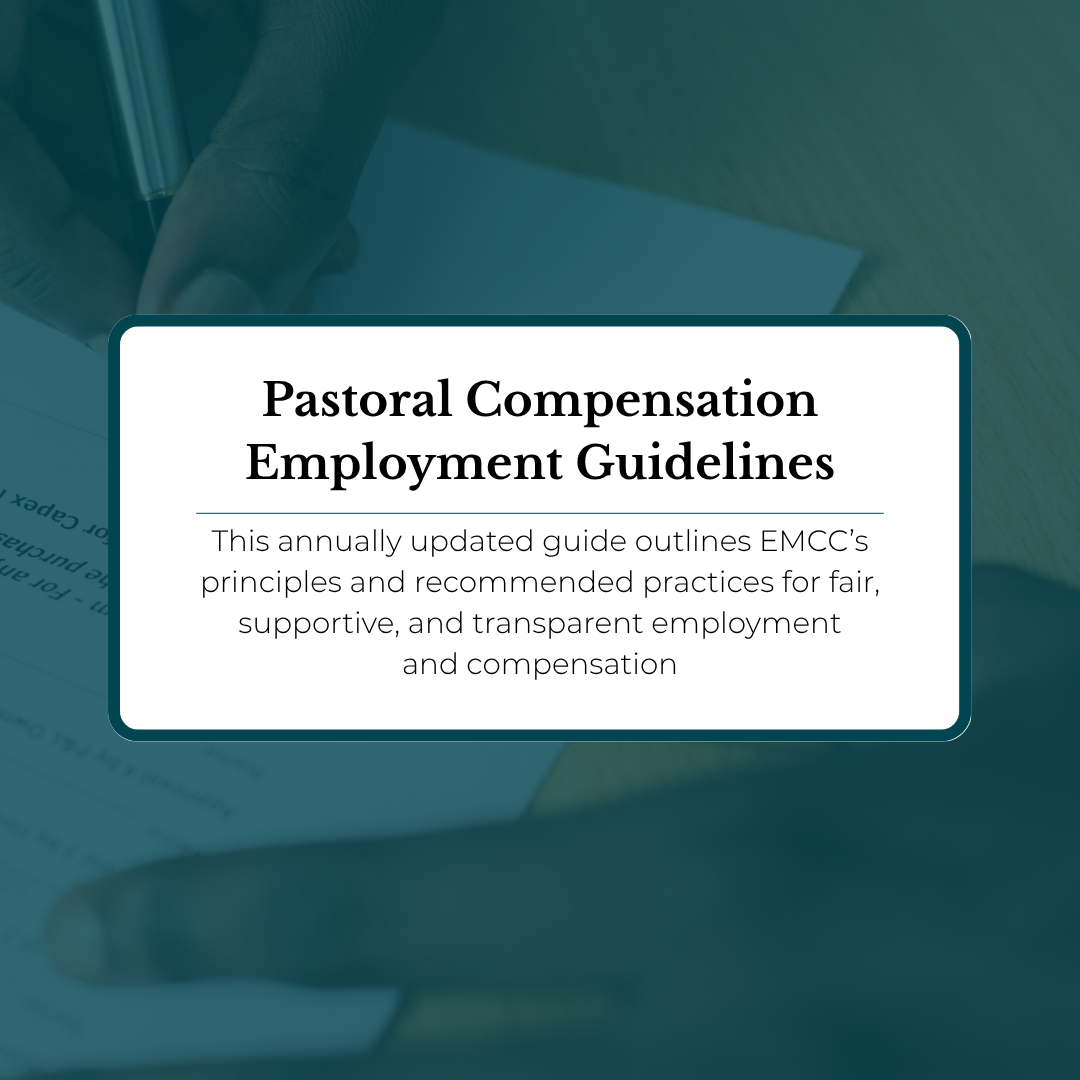 This annually updated guide outlines EMCC’s principles and recommended practices for fair, supportive, and transparent employment and compensation of pastors and church staff, including salary formulas, benefits, and leave policies.