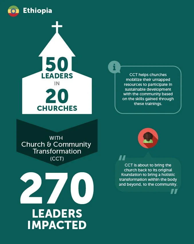 This graphic representing impact of CCT undertaken in 2019 and 2020 where churches in Kucha, Ethiopia equipped themselves and served their communities, amidst a global pandemic. We celebrate and praise Jesus for this work, and trust Him for more opportunities to engage in this type of equipping.